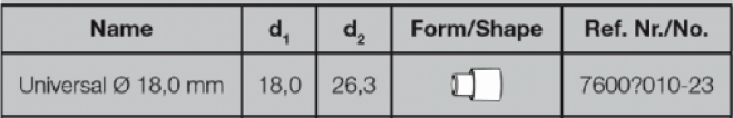 Universal 18mm adaptor to Durr large h/piece (7600 010-23) See DW1772