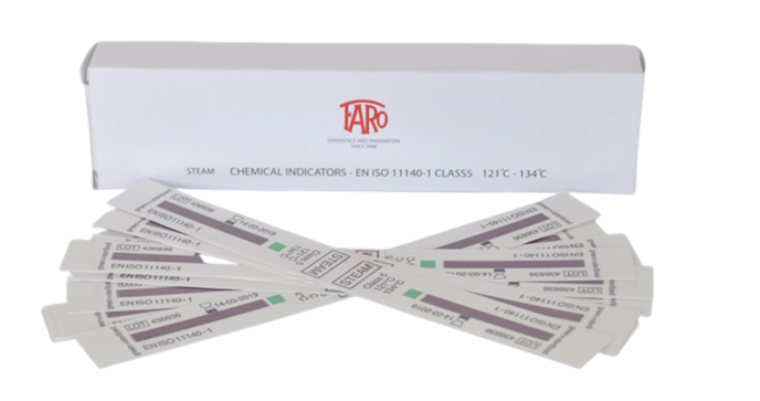 CHEMICAL INDICATORSFUNCTIONFREQUENCYCYCLE TYPEVerify the effectiveness of the sterilization processSingle indicator for packaging for each sterilization loadB type cycle at 134°C for 3.5 minutes